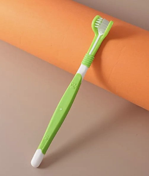 Tandborste Med Tre Huvuden är en lättanvänd och effektiv tandborste för hundar & Katter. Med sina tre borsthuvuden omsluter djurtandborsten tänderna och rengör tändernas in och utsida samtidigt. Förenklar tandborstning och bidrar till att förbättra munhälsan hos ditt husdjur. Finns i två färger.